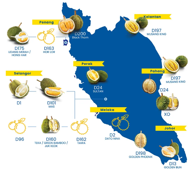 在馬來西亞,大約有200個榴蓮品種有自己獨特的風味和香氣。同時它們也對適宜的生長條件也特定的需要,例如降雨,海拔,溫度和土壤結(jié)構(gòu)。榴蓮僅在成熟季節(jié)才有供應(yīng)那發(fā)生在每年的六月和七月。那個時節(jié)成熟后從樹上自然掉落的榴蓮,往往會含有較多的果肉和更濃郁的香氣。